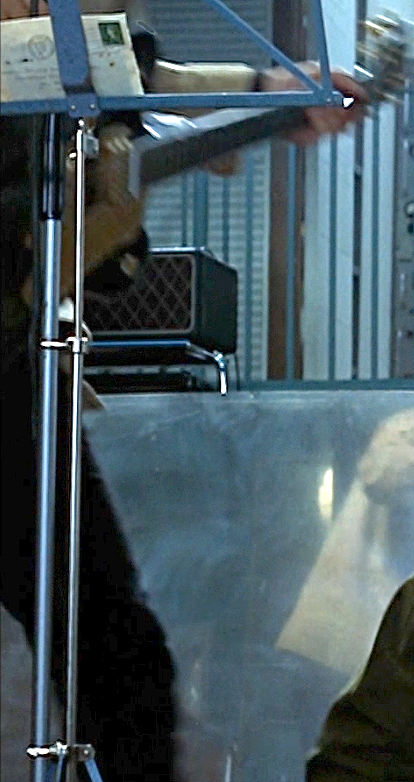 Click as ever for larger images. The AC50 is on top of the bass cab. In the rear view from the "control room" one can just about make out the closeness of the power and speaker cables. On the AC80/100s they were much further apart.