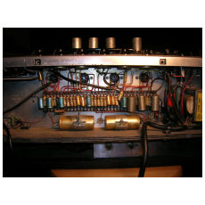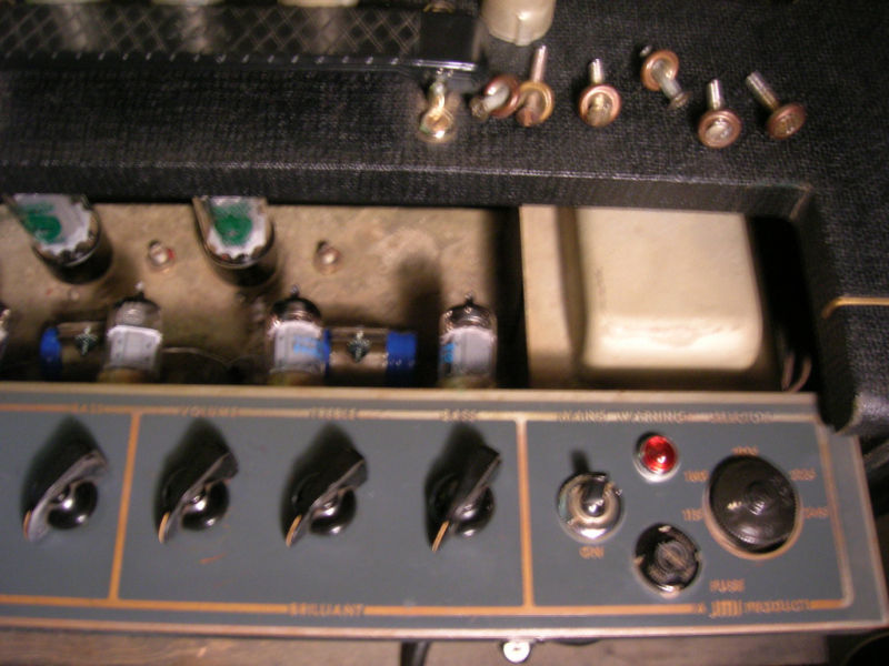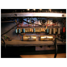 The units fitted to the amps below, however, were manufactured in the U.S.A., presumably being installed at a Thomas Organ Service Center. In contrast to the JMI units, these were transistorised rather than valve reverbs, as the picture immediately below shows.
