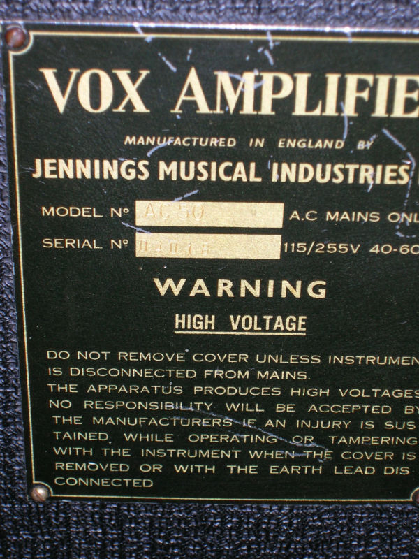 Whether at any point it was considered for the AC50 in any serious way by JMI remains to be seen. Only one AC50 has emerged so far with unit fitted - AC50 serial number 1915, large box, valve rectified - reverb certainly in place by the 1970s. Note that reverb's schematic - OS/075 - is close in sequence to the new schematic for the AC50 mark 3 - OS/072.