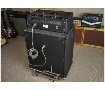 Wonderful original condition is evident from the pictures. The speaker cab is probably a very early solid state Foundation Bass cab - the driver is a Celestion T1296 (first logged in the Celestion record book in October 1966), there is a port underneath, and the baffle screws have been sealed with yellow paint (a typically later practice). The logo however is still of the old style, so this is probably a transitional unit between the valve and solid state lines.