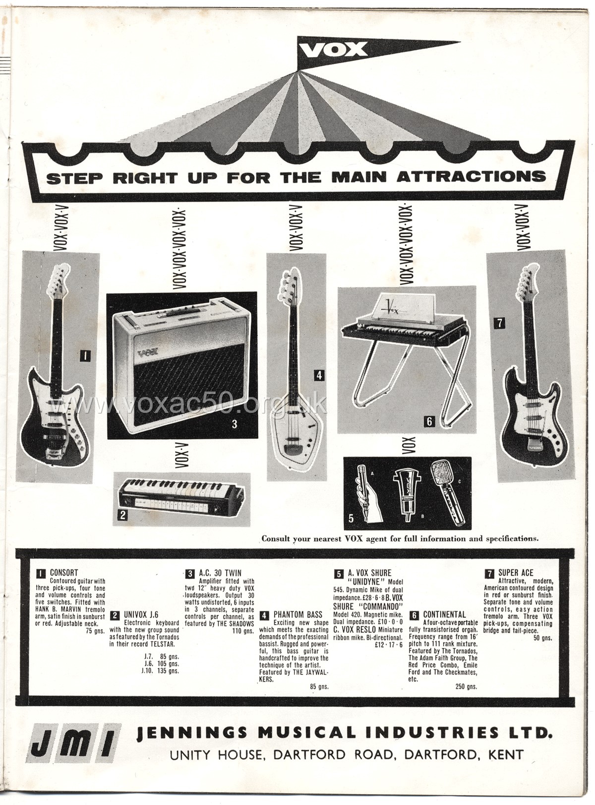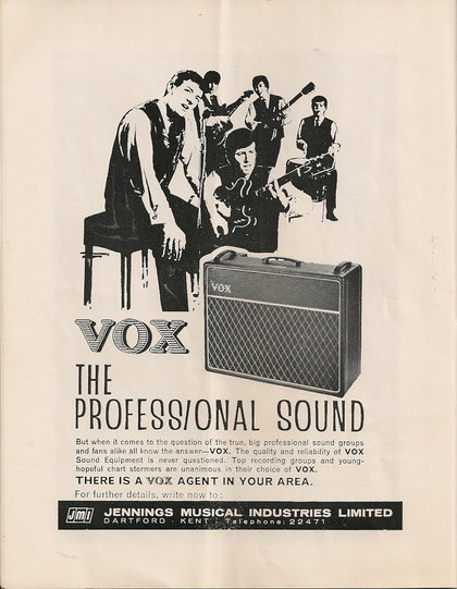 Below, the adverts placed by Vox (JMI) in "Beat Monthly" magazine in 1963. Click on the thumbnails for larger versions.