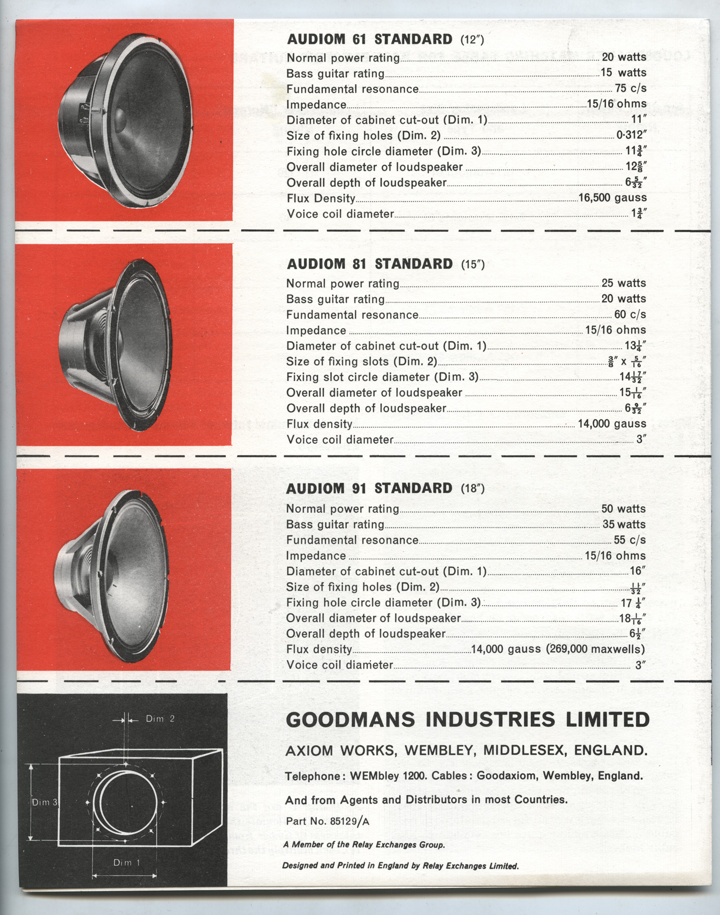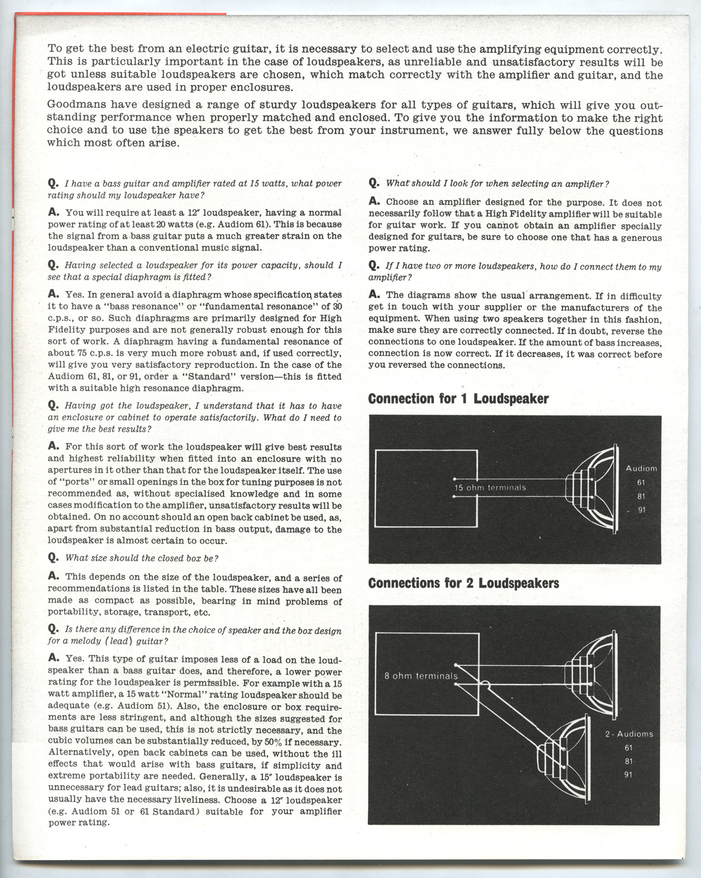 GOODMANS GUITAR SPEAKER BROCHURE, 1965