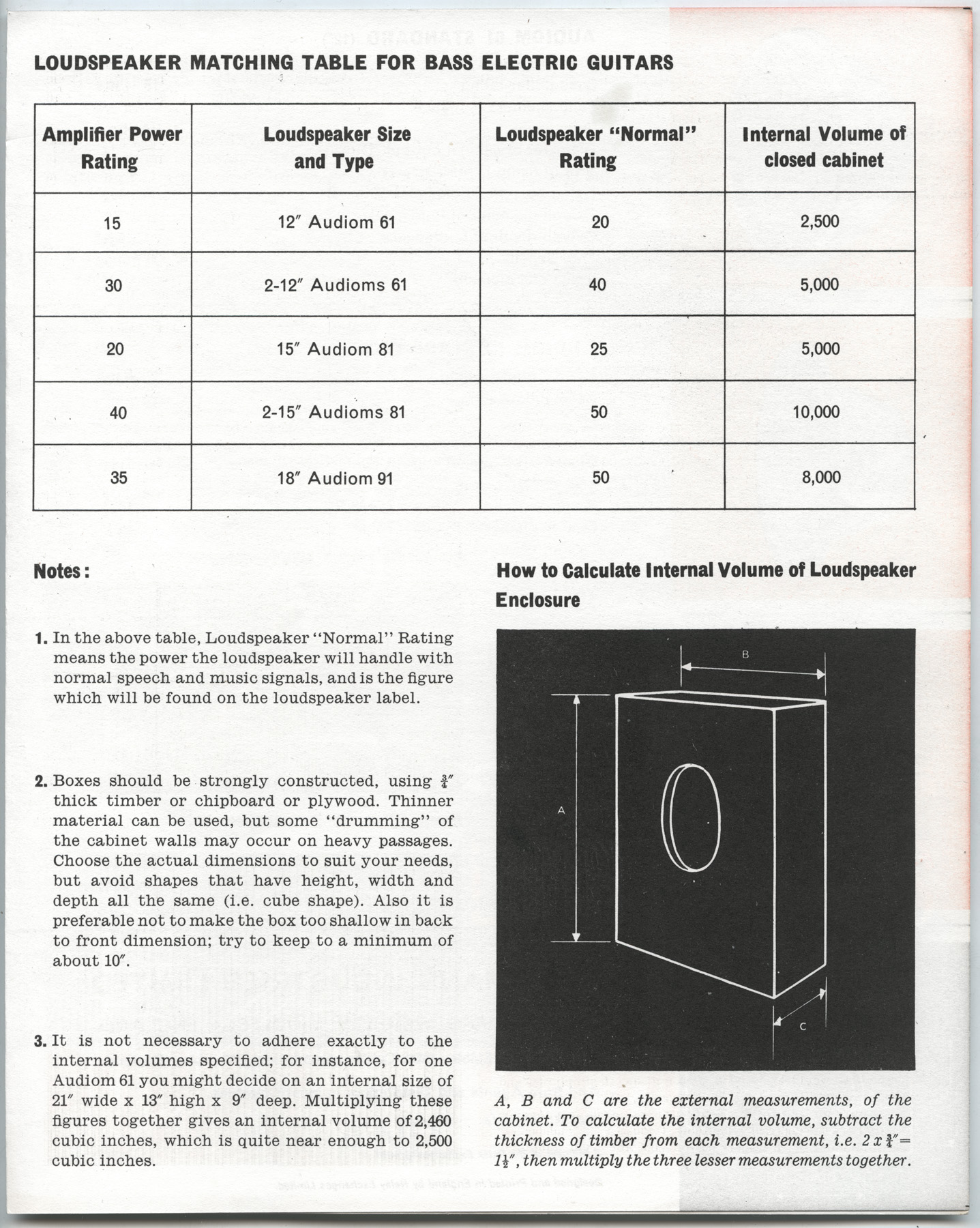 Undated, but proabably 1965. Recommendations on connections, impedance, type of speaker for various applications, and ideal volumes of speaker cabinets.