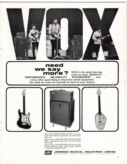A new page now started, bringing together dealer ads and small ads for Vox AC50s published in newspapers and magazines in the 1960s - click here. It's also accessible on the main index page for Vox promotional material.