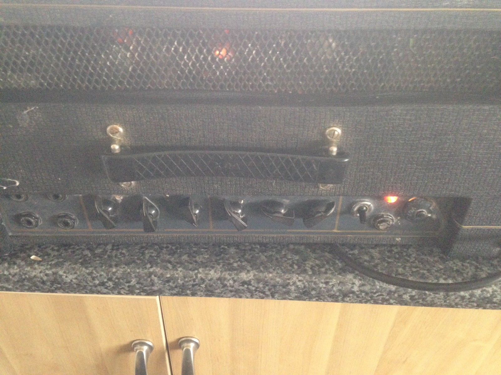 Also note the little bits of tape on the control panel marking the settings for the controls, and the cigarette about to burn the tolex.