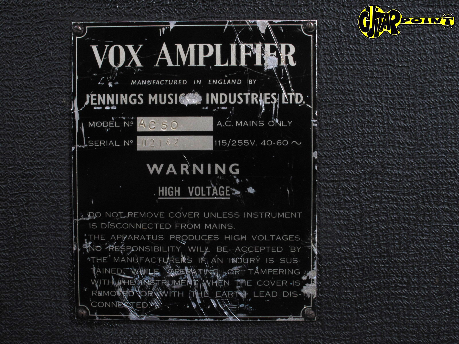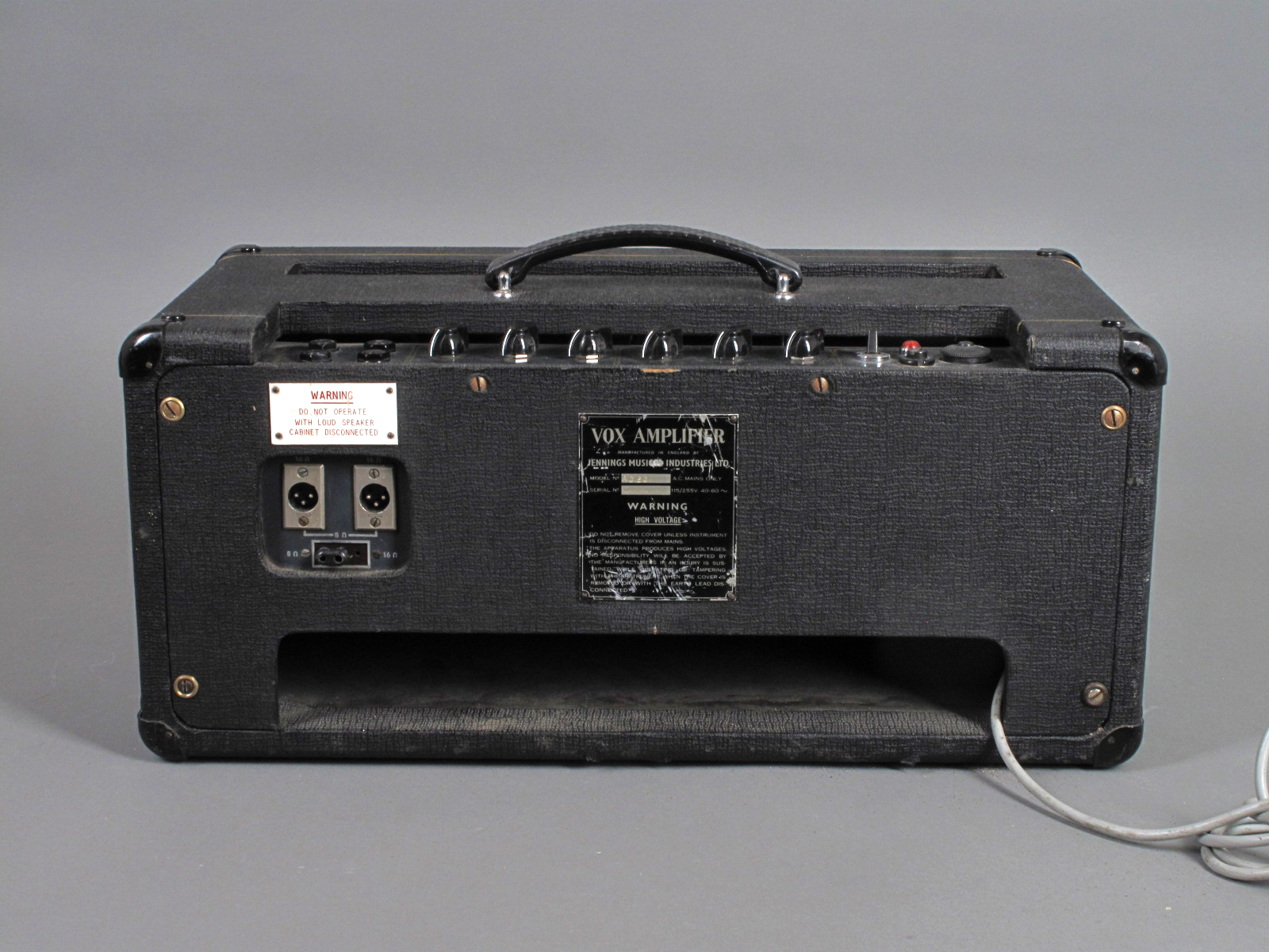 Serial numbers for PA amps were part of the sequence for the guitar amps. Below, AC50 serial no. 02666, actually a metal-clad sloping-front PA.