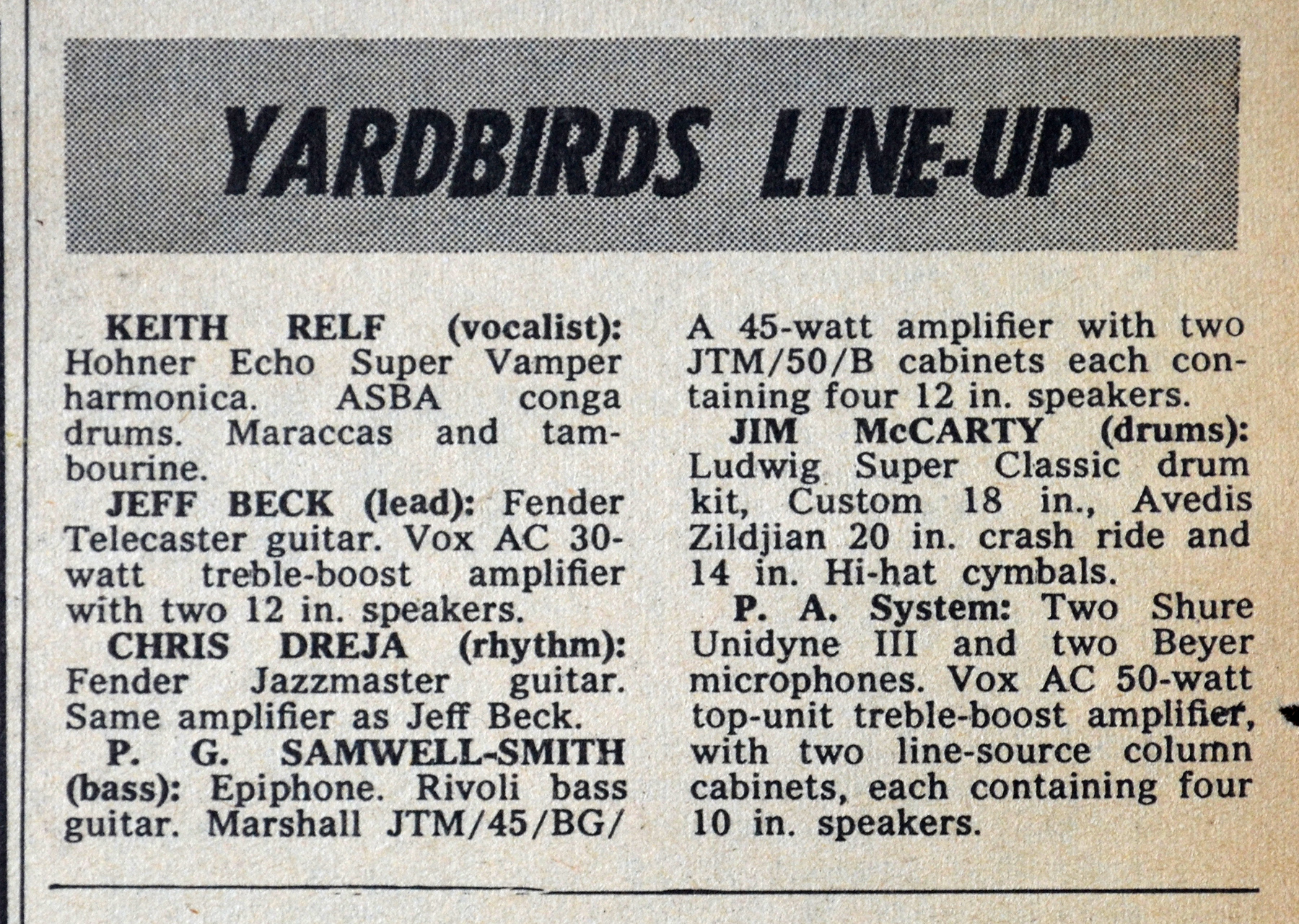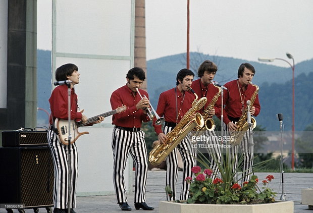 "Formula 1" (from the West Midlands) pictured in late 1964 with a small-box (presumably diamond input) Foundation Bass set, similar to the one with Johnny Hallyday's band, below.