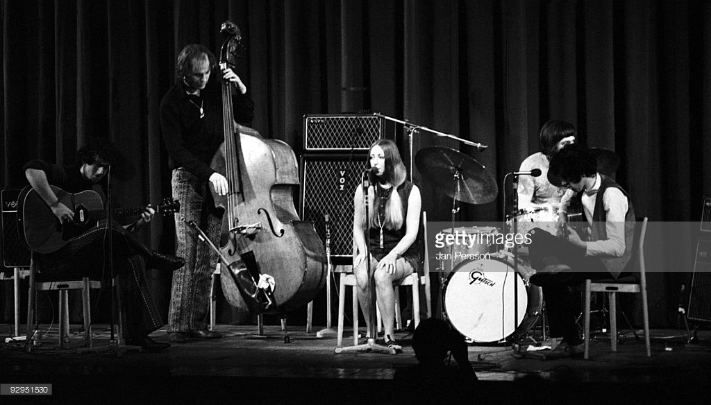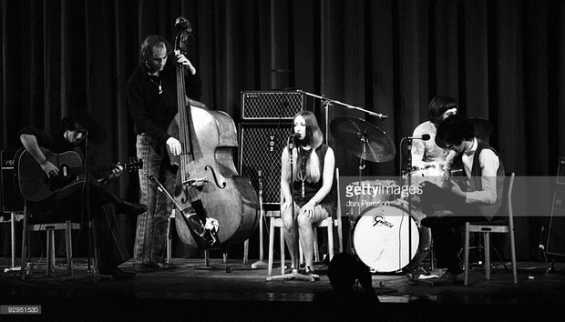 Pentangle on stage, Copenhagen, September 1969, with two AC50s - one with new-style logo, one old. Pictures from Getty Images.