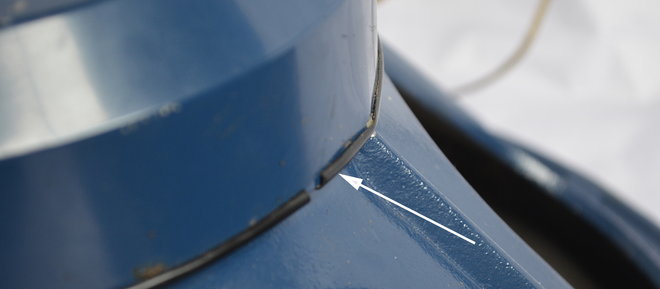 Above, a detail of the metal dust-cap, which has a black rubber trim strip around its edge.