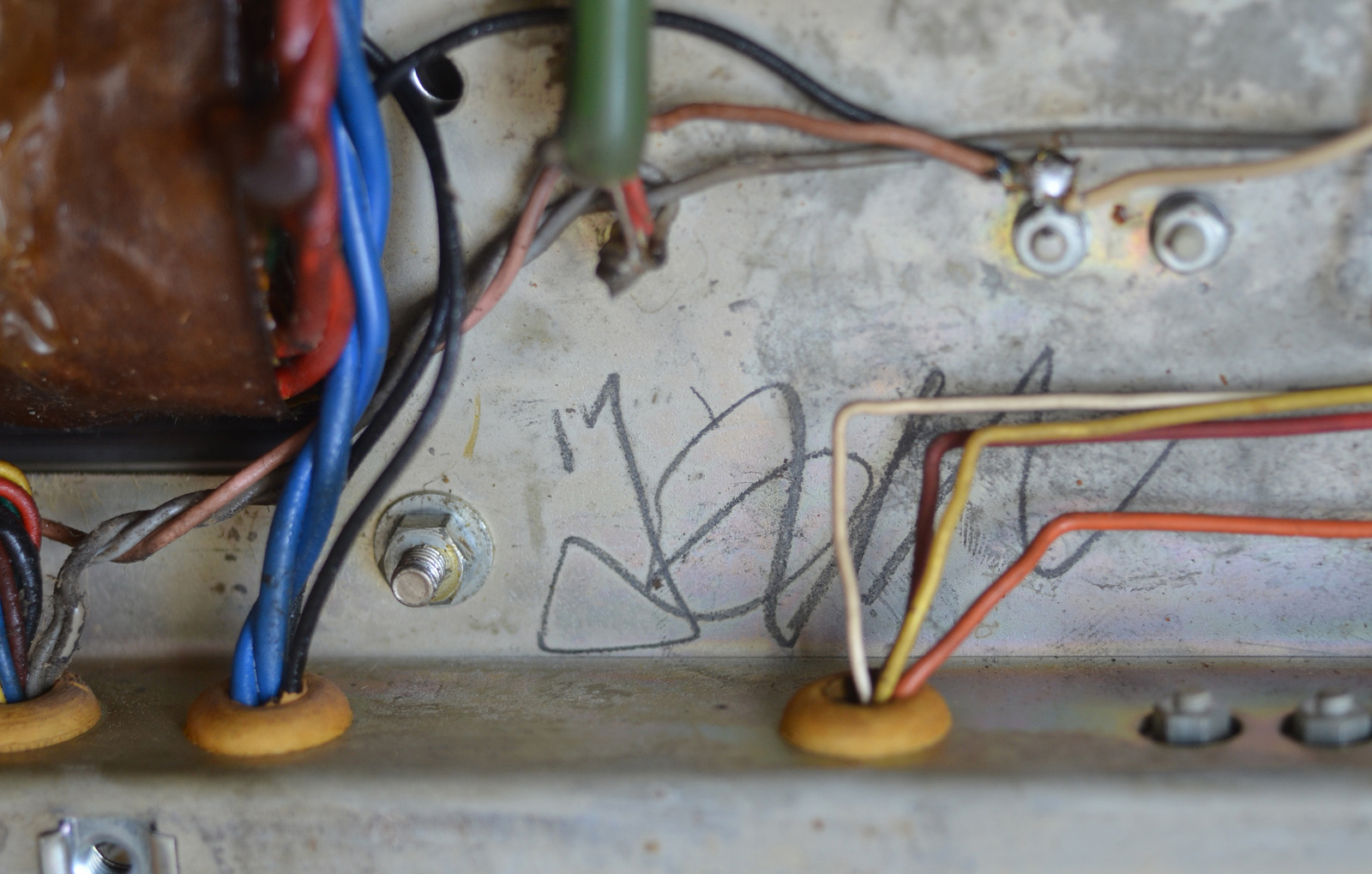 Initials on the chassis - "JSM" ? - written before the wiring was put in.